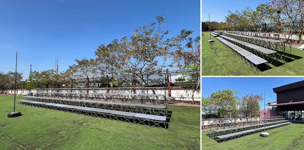 เช่าสแตนด์เชียร์ สแตนด์ถ่ายภาพ อัฒจันทร์เชียร์ โครงสร้างสวยงามมั่นคงแข็งแรง ติดตั้งโดยช่างมืออาชีพในราคาควบคุมได้ อัฒจันทร์ 50-100 ที่นั่ง ติดตั้งพร้อมราวกันตก เช่าอัฒจันทร์ราคาถูก เช่าเวทีอัฒจันทร์ โครงสร้างอีเว้นท์ สแตนด์ถ่ายรูปหมู่บริการทั่วไทย T.0616563999, 0639204666