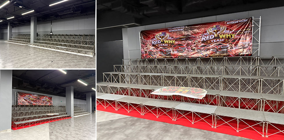 เช่าเวทีอัฒจันทร์ โครงสร้างอีเว้นท์ เวทีสำเร็จรูป สแตนด์เชียร์สแตนด์ถ่ายภาพหมู่ โครงสร้างสวยงามมั่นคงแข็งแรง ให้เช่าสแตนด์ถ่ายรูปผู้ร่วมประชุมต่างชาติจำนวนมาก ติดตั้งบนอาคารได้ รื้อถอนรวดเร็วบริกาาด้วยช่างมืออาขีพ บริการให้เช่าอัฒจันทร์ Quickframe มั่นคงแข็งแรงราคาถูกทั่วไทย Line id : 0639204666, 0616563999